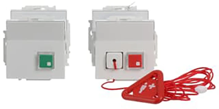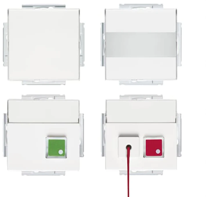 Noodoproepsysteem voor mindervalidentoiletten met voeding, alarm, trekkoordknop, annuleerfunctie, optisch/akoestisch signaal en comfortverlichting. Voldoet aan DIN VDE 0834 (continu stroom vereist). Labelvelden: 61x20 mm / 61x61 mm. |