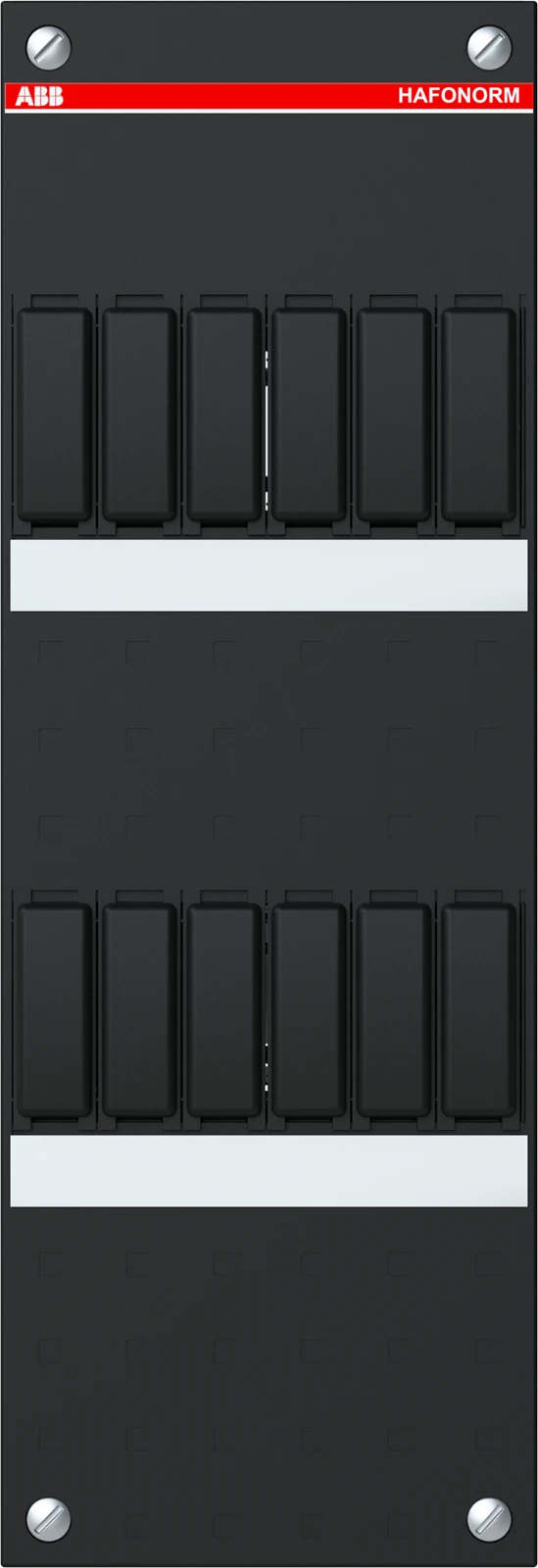 Lege kast voorzien van één Busboard 3-fasen, inclusief twee DIN-rails, 110 x 330 mm, 12 modules (6+6). |