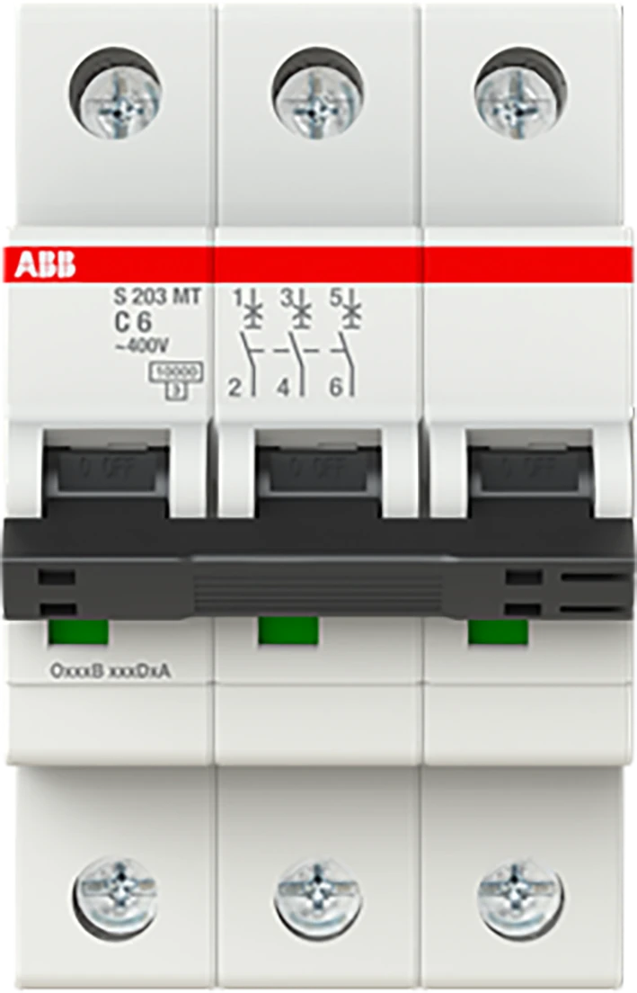 S203MT-C6 installatieautomaat, C-karakteristiek, 10 kA, 6 A, 3-polig |