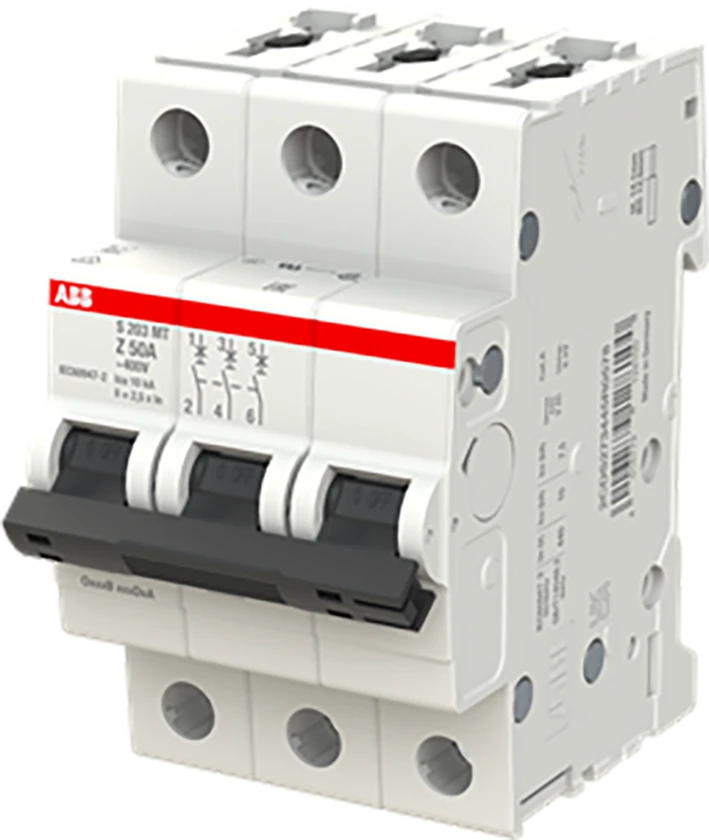 S203MT-Z50 installatieautomaat, Z-karakteristiek, 10 kA, 50 A, 3P |