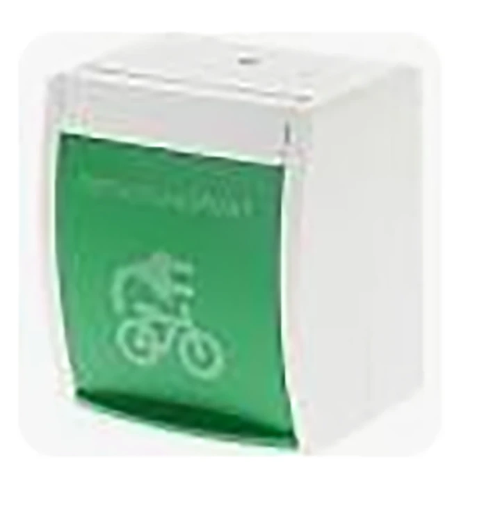 Opbouw wandcontactdoos met randaarde, met verhoogde aanraakbeveiliging, met groene klapdeksel, met symbool "E-Bike", IP44, ocean-alpinwit.
