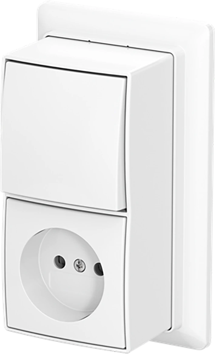 Schakelaar/wandcontactdoos combinatie AP plus combinatie kv wis + plaat opb b-AP+ alpine wit